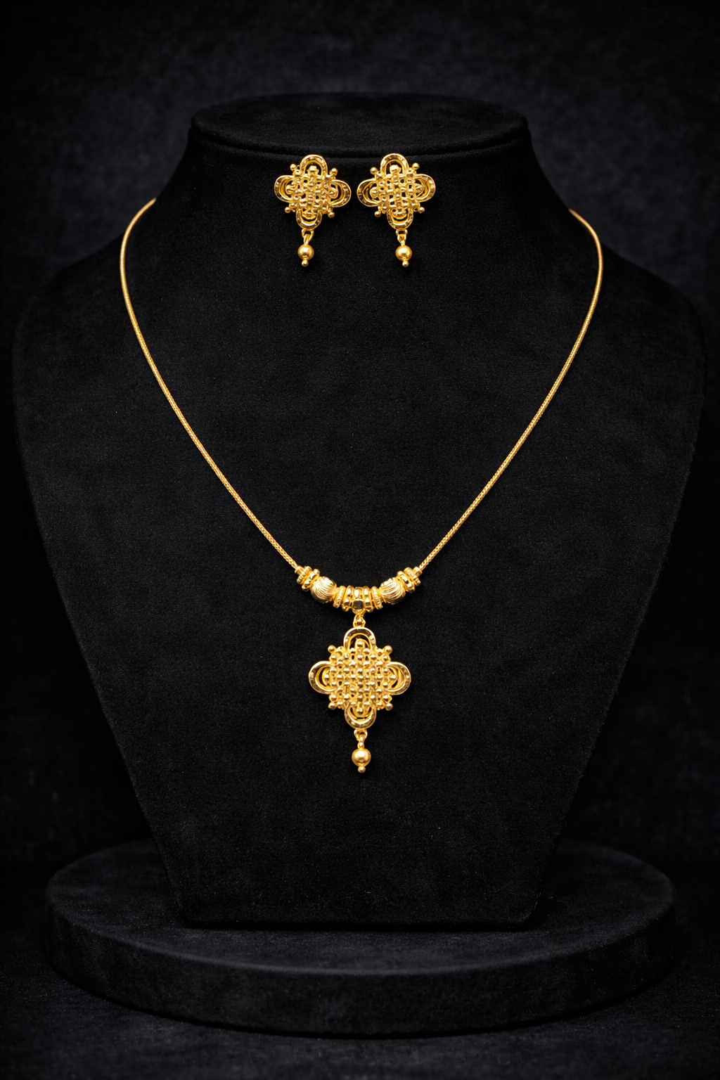 Be the first to review “Classic Floral Pendant Gold Necklace Set”