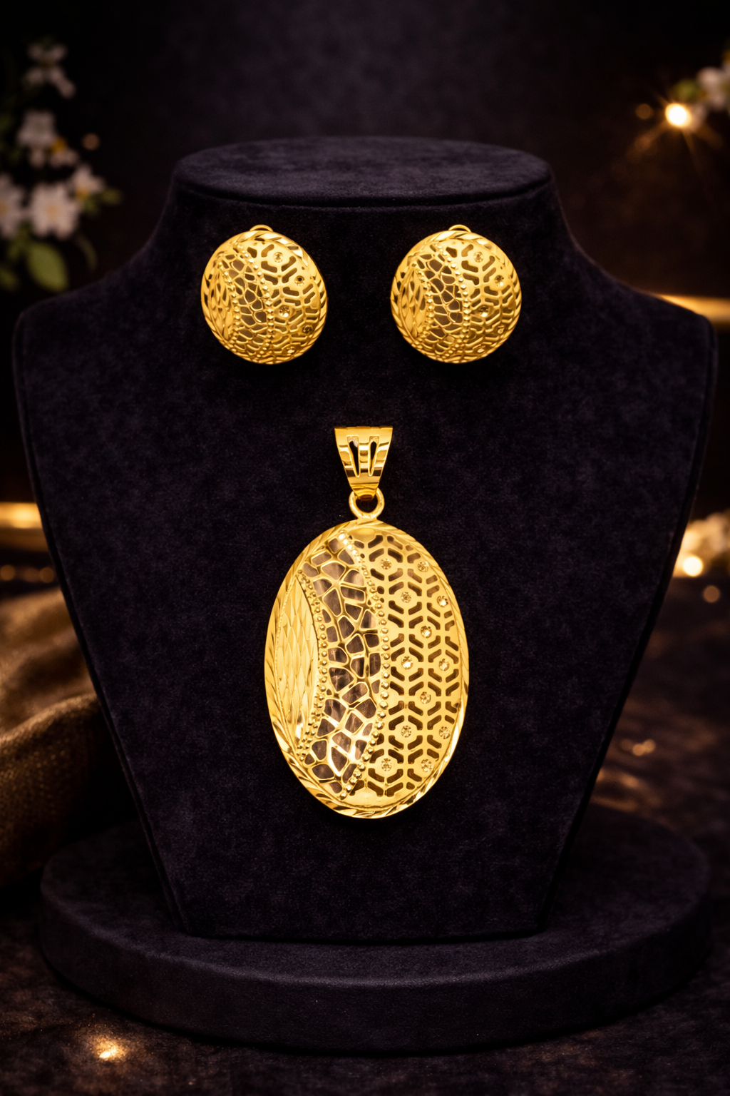 Classic Oval Cutwork Gold Pendant Set – 6.5 Gram