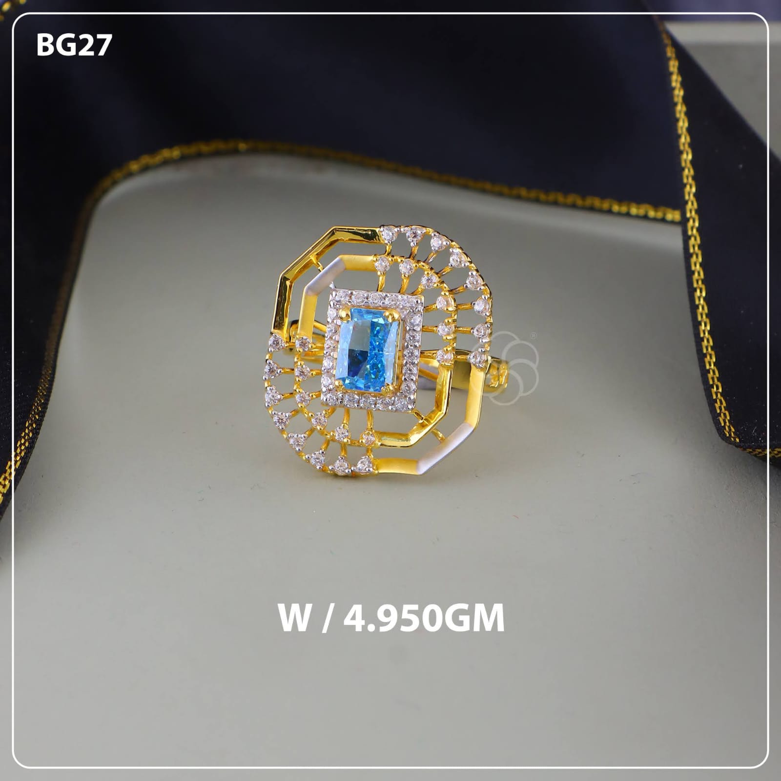 • Rectangular blue center gemstone