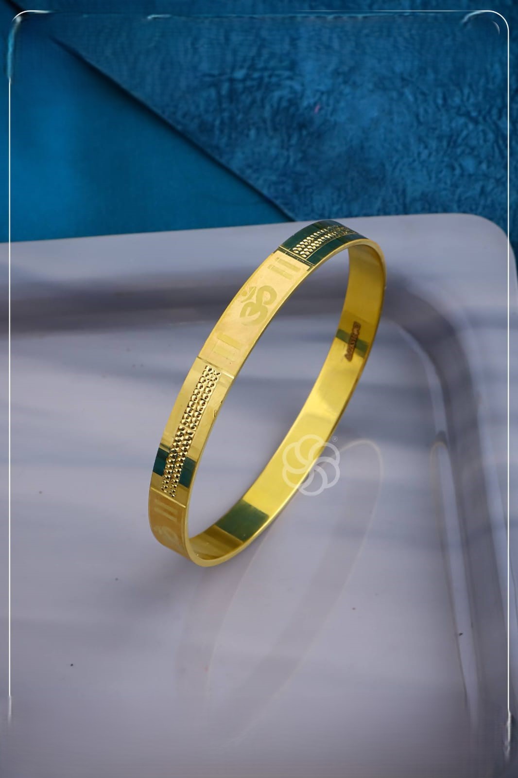 Om Engraved Gold Kada with Textured Detailing