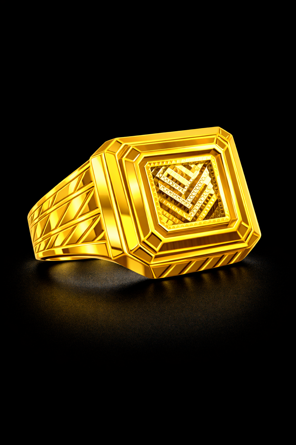 Square Modern Design Gold Ring for Men