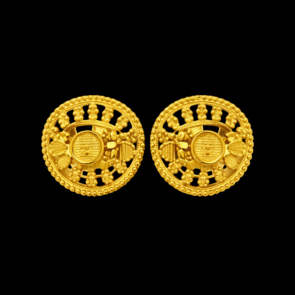 Traditional Gold Plated Round Antique Design Stud Earrings