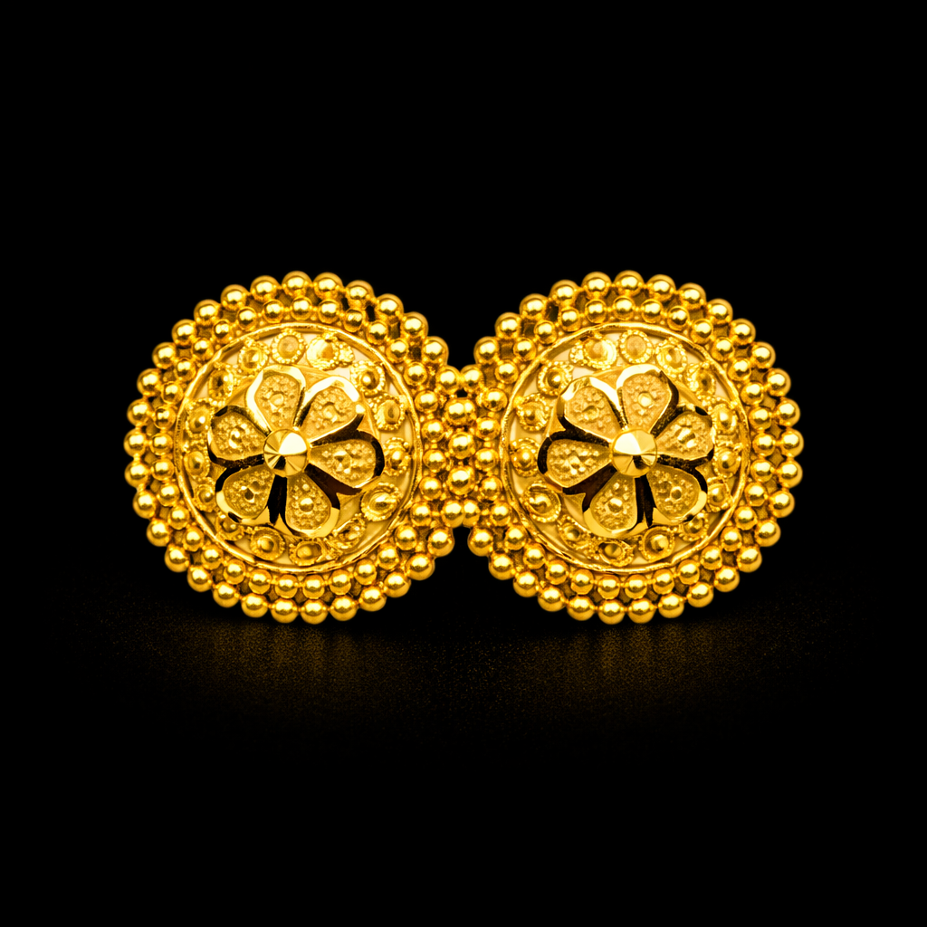 Traditional Gold Plated Round Flower Design Stud Earrings