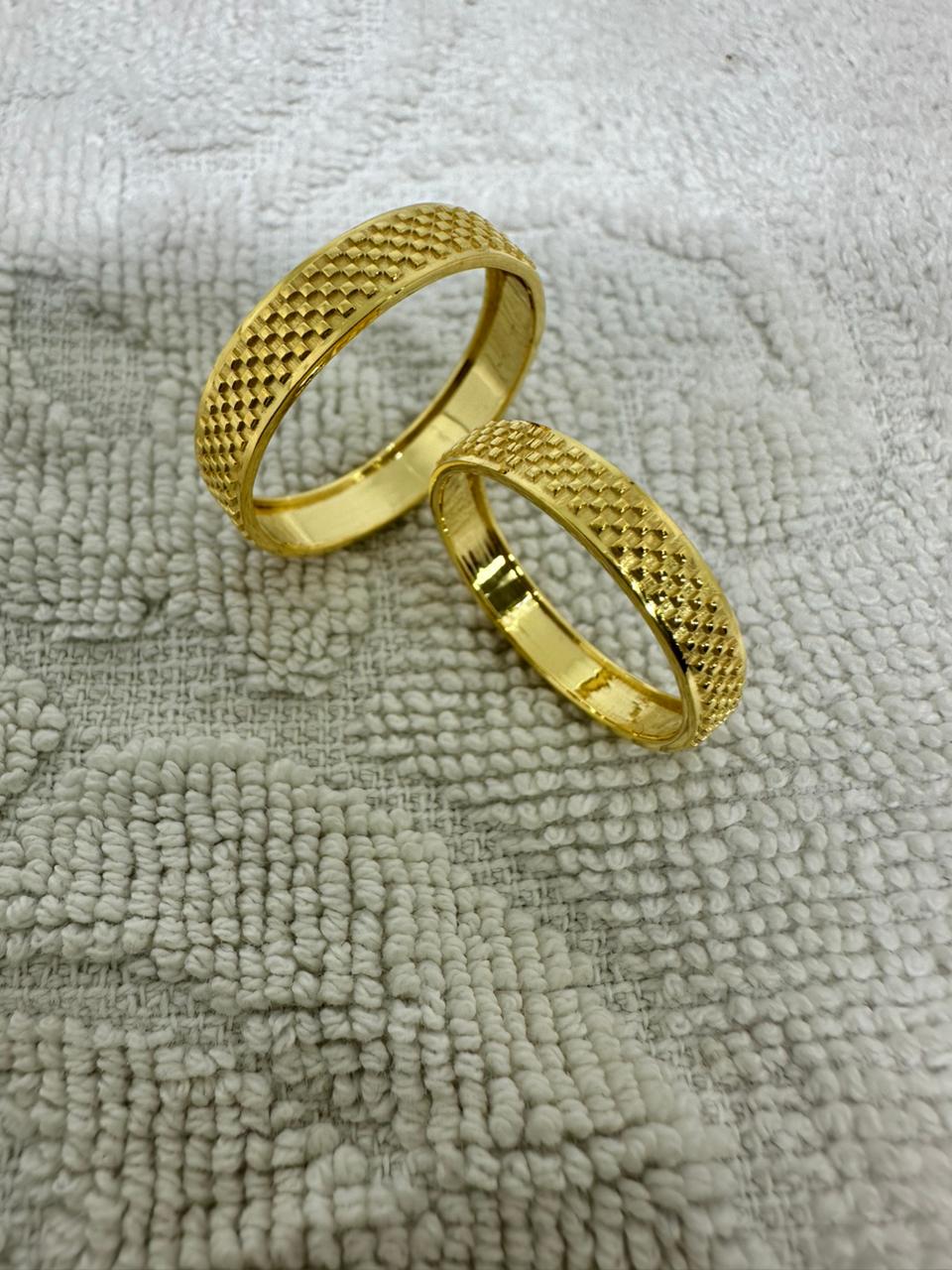 Elevate your everyday style with these exquisitely crafted golden bands. Featuring a unique, precision-cut “checkerboard” textured surface, these rings catch the light from every angle. The high-polish interior ensures a comfortable fit, making them perfect for both special occasions and daily wear.