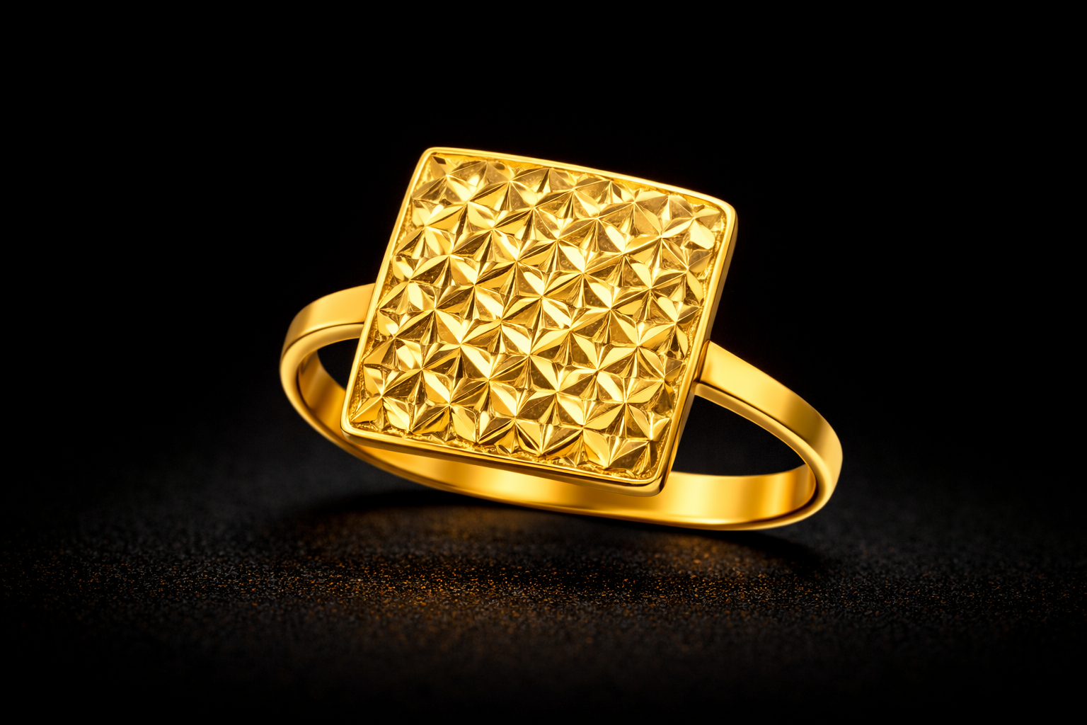 Modern Geometric Square Gold Ring with Faceted Pattern