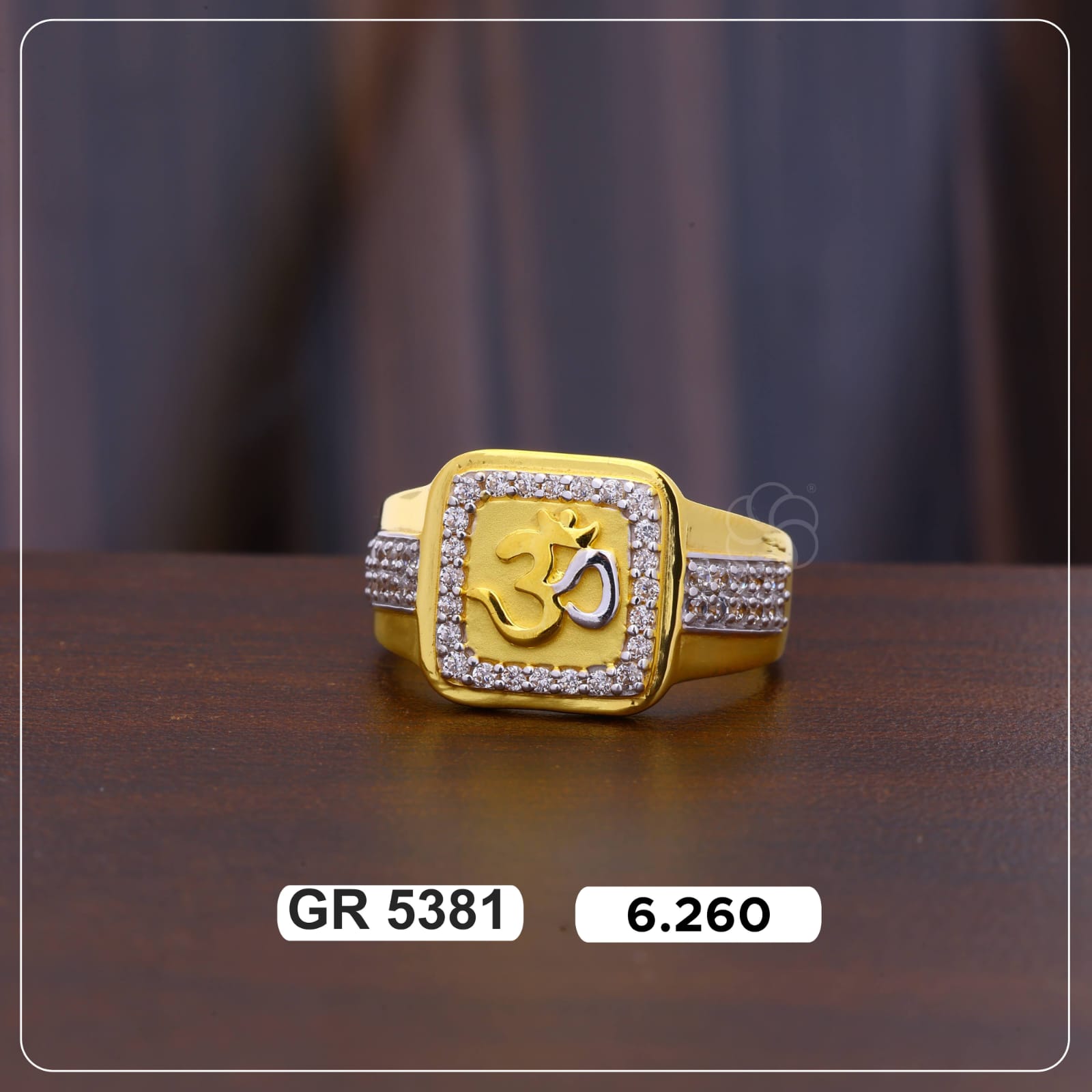 The Om is placed on a square gold base and surrounded by a border of small sparkling stones, adding just the right amount of shine without making it too flashy. The sides of the band also feature stone detailing, which enhances the overall look from every angle.
