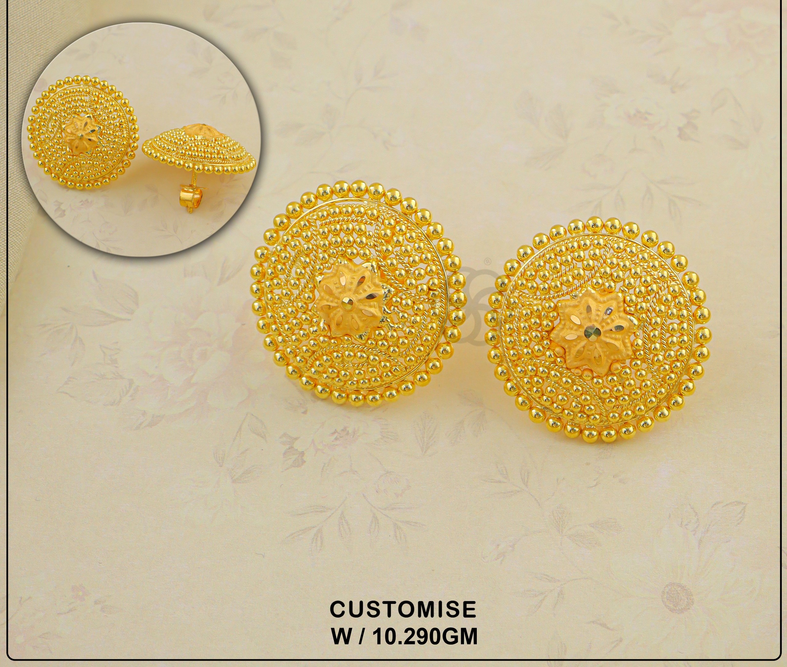 Traditional Circular Filigree Gold Stud Earrings with Beaded Border